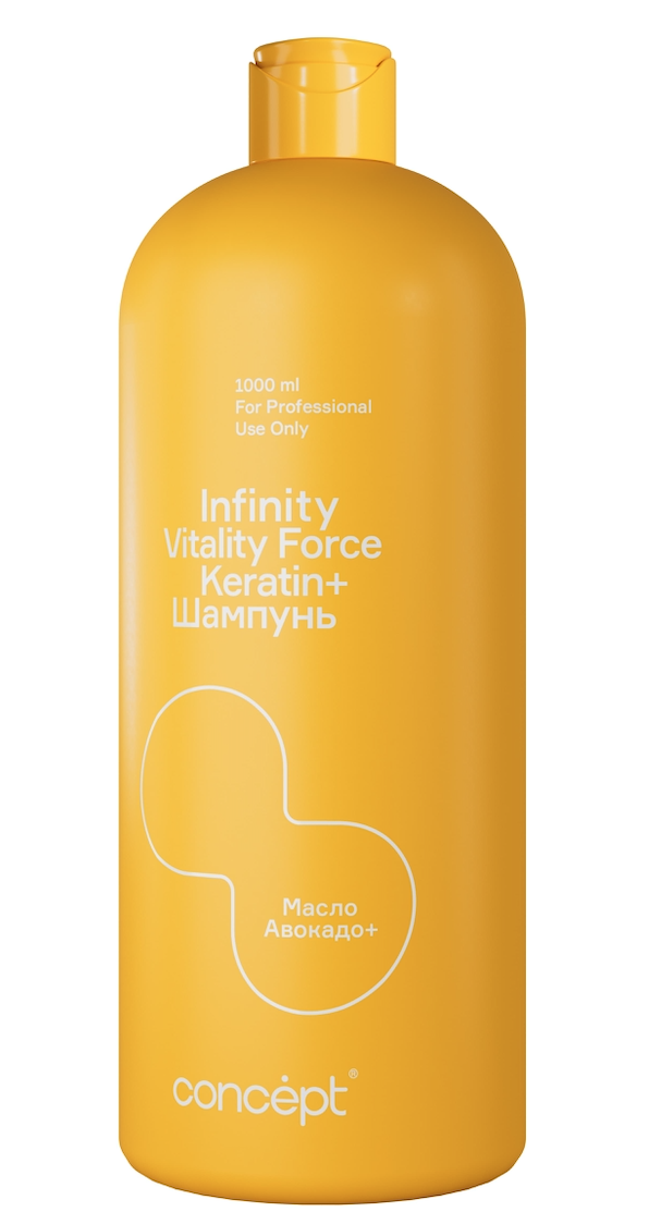 Концепт INFINITY Шампунь восстанавливающий Vitality Force Shampoo Keratin+ - эффективно решает проблему очищения очень поврежденных волос.