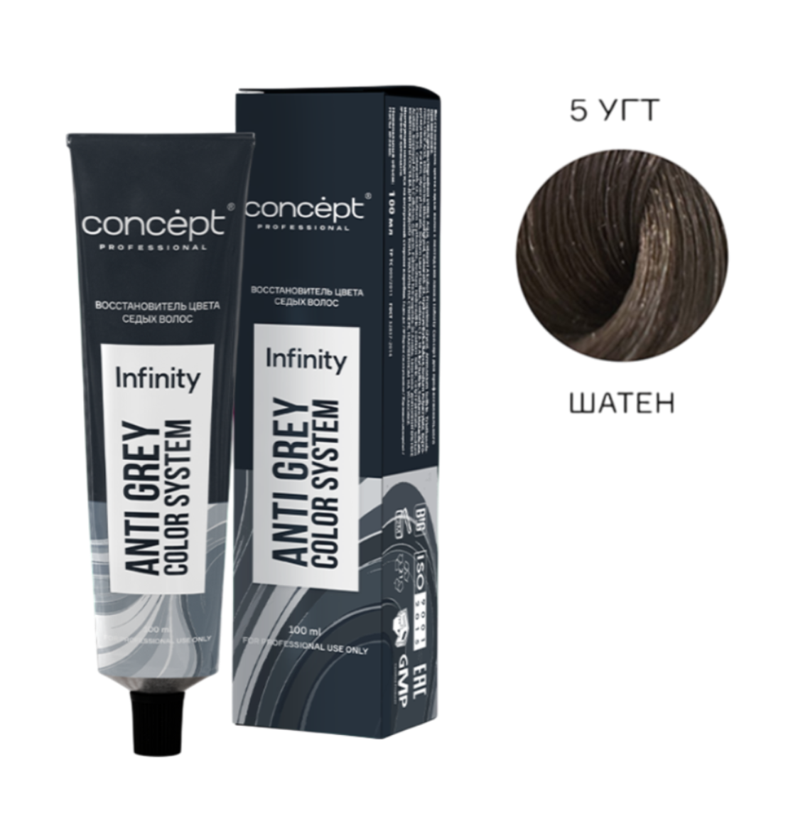КОНЦЕПТ INFINITY Восстановитель цвета седых волос с пептидами Шатен - обогащен уникальным компонентом ухода за седыми волосами, который укрепляет волосы на молекулярном уровне, усиливает цвет и блеск.