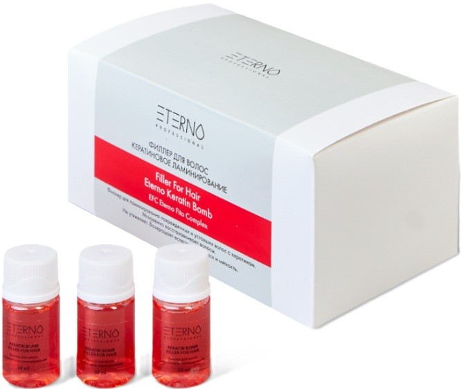 ETERNO Professional Ампулы для волос Кератиновое ламинирование - средство проникает глубоко в структуру волоса, наполняет его изнутри, разглаживает кутикулярный слой, восстанавливает пептидные связи на клеточном уровне.