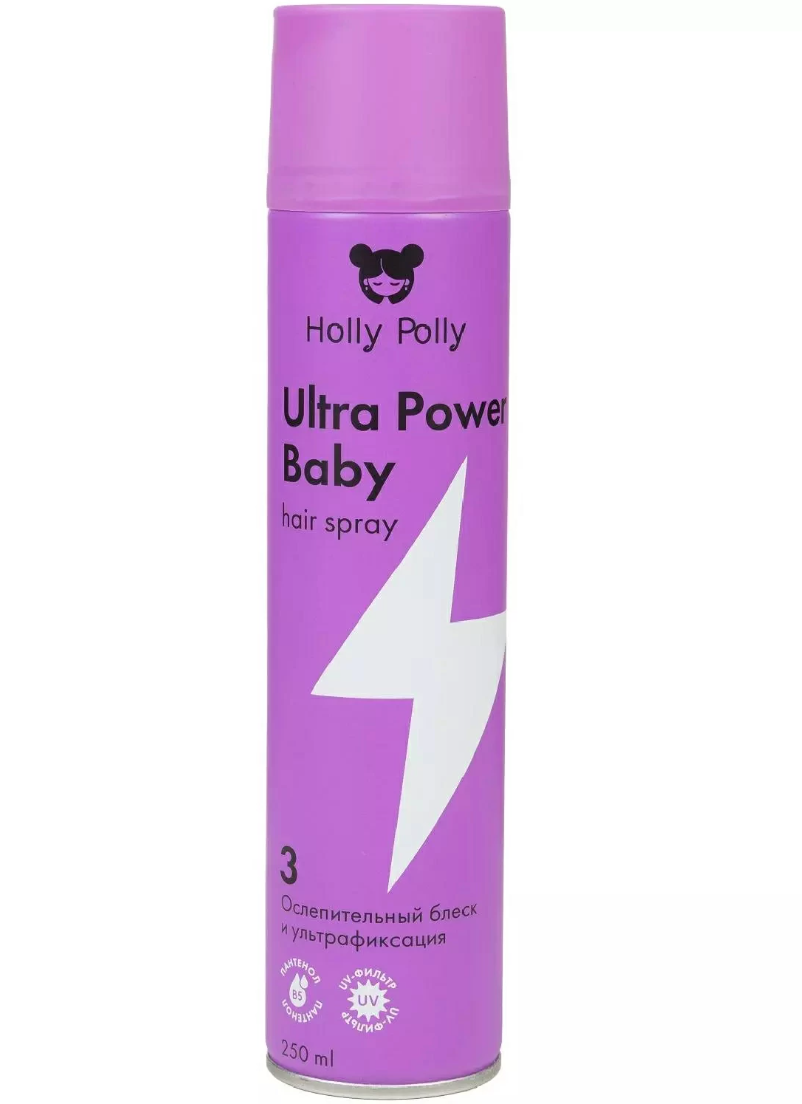 - Holly Polly Лак для волос ослепительный блеск и ультрафиксация, 250 мл.