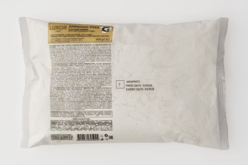 LUXOR AMMONIA-FREE - это веганский осветляющий порошок, который обеспечивает осветление до 7 уровней без аммиака, резких запахов и без ущерба для качества волос.