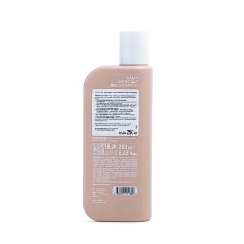 Бережно очищает кожу головы, снижает раздражения и оставляет волосы мягкими, блестящими и шелковистыми. Органический экстракт калины саржента — снимает воспаления и способствует заживлению мелких трещин. Органический экстракт даурской лапчатки — обладает восстанавливающими и успокаивающими свойствами. Органический экстракт лиственницы сибирской — повышает упругость кожи и сопротивляемость внешним факторам. Провитамин B5 — увлажняет и успокаивает раздражённую кожу головы.
