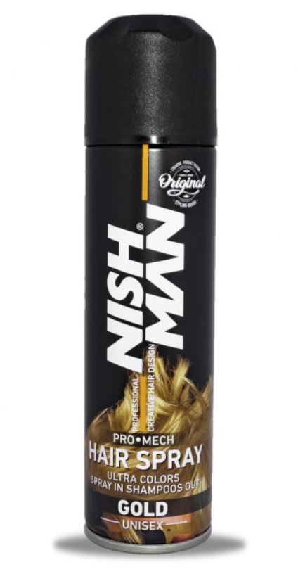 NISHMAN Цветной спрей для укладки волос Золотой.