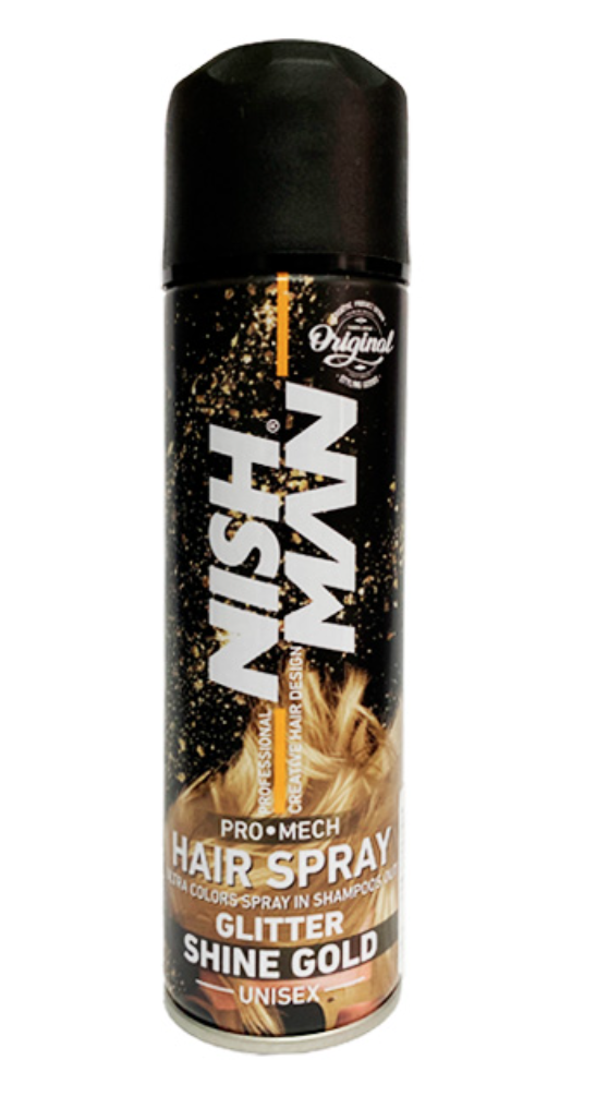 - NISHMAN Цветной спрей для укладки волос Золотой с блестками, 150 мл.