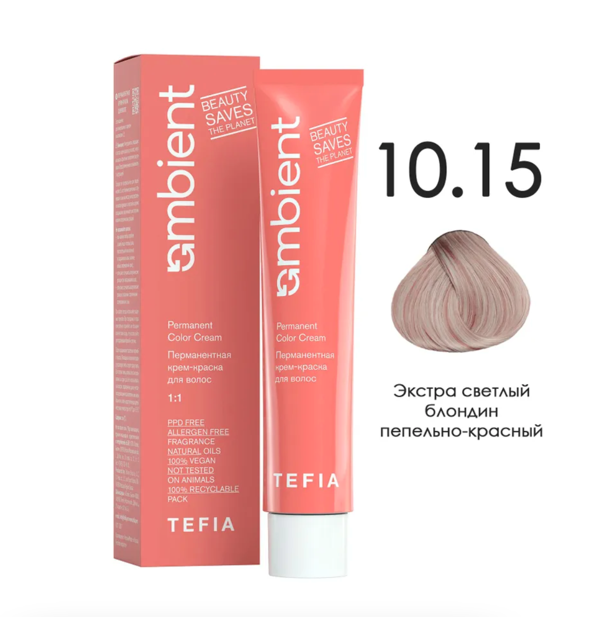 - TEFIA AMB Крем-краска 10.15 Экстра светлый блондин пепельно-красный, 60 мл.