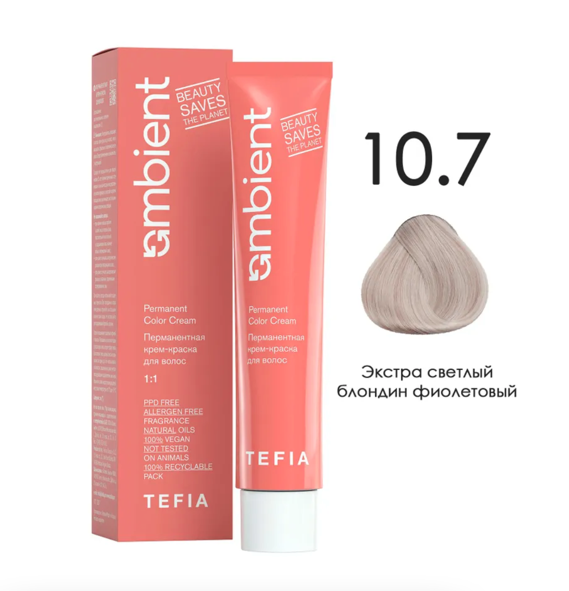 - TEFIA AMB Крем-краска 10.7 Экстра светлый блондин фиолетовый, 60 мл.