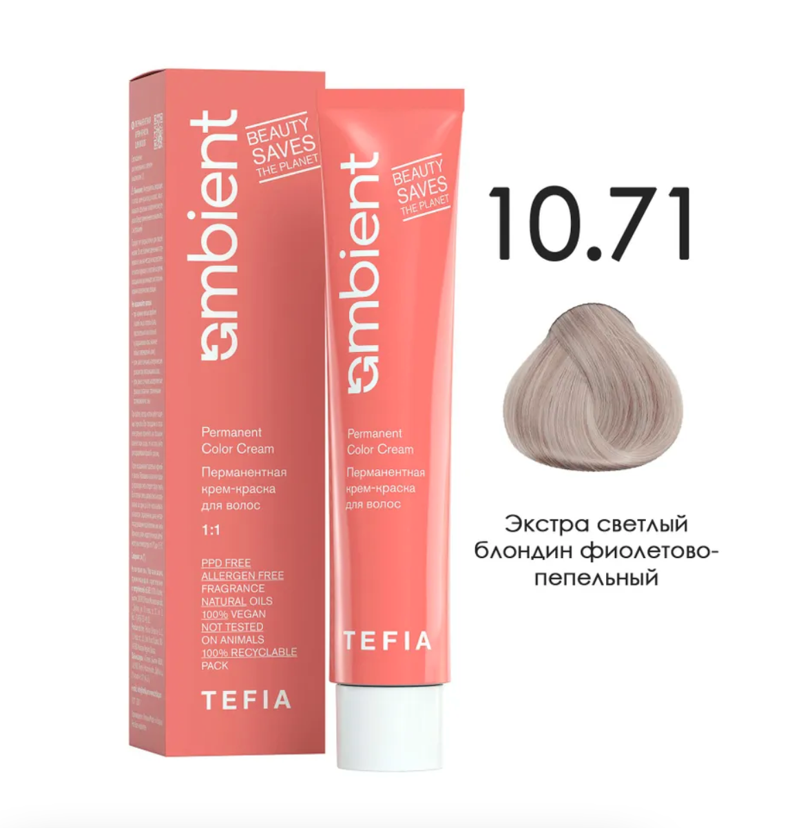 - TEFIA AMB Крем-краска 10.71 Экстра светлый блондин фиолетово-пепельный, 60 мл.