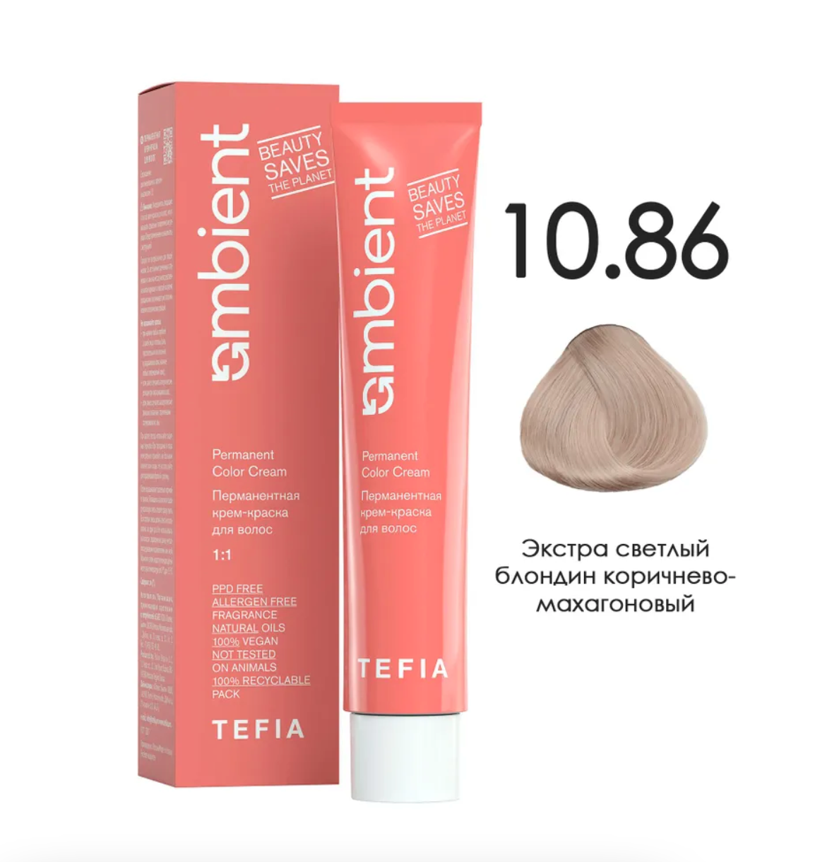 - TEFIA AMB Крем-краска 10.86 Экстра светлый блондин коричнево-махагоновый, 60 мл.