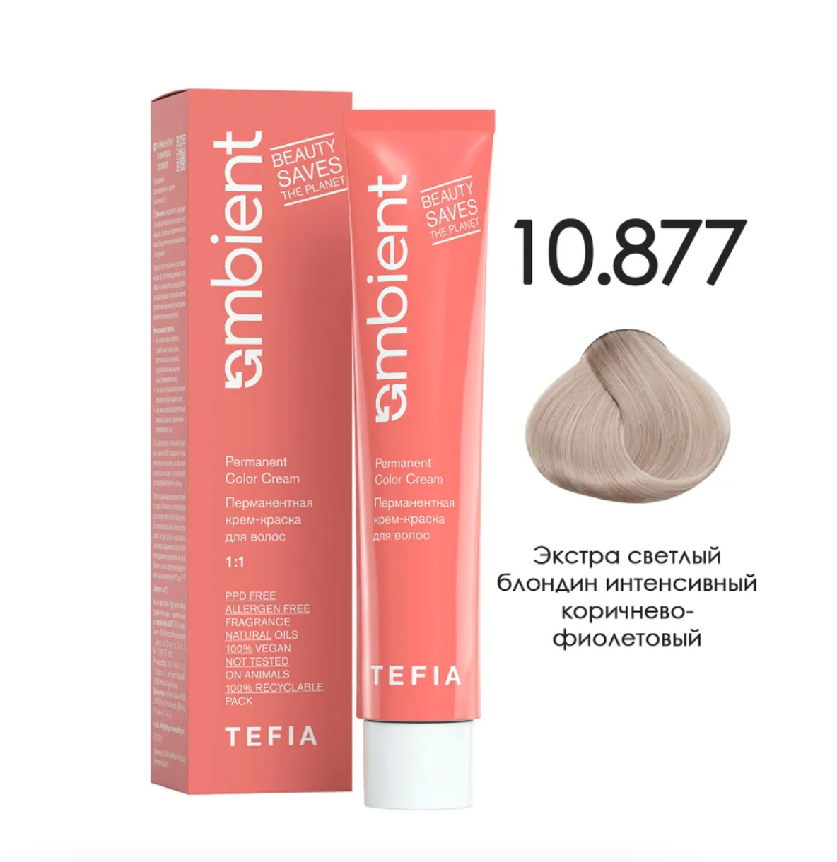 - TEFIA AMB Крем-краска 10.877 Экстра светлый блондин интенсив. коричнево-фиолетовый, 60 мл.
