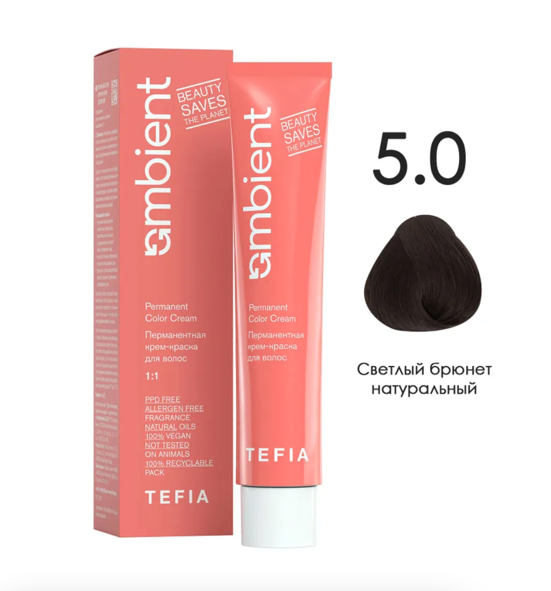 - TEFIA AMB Крем-краска 5.0 Светлый брюнет натуральный, 60 мл.