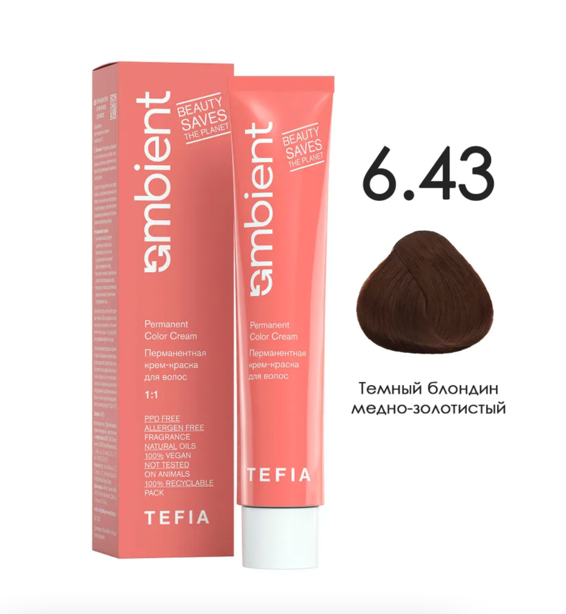 - TEFIA AMB Крем-краска 6.43 Темный блондин медно-золотистый, 60 мл.