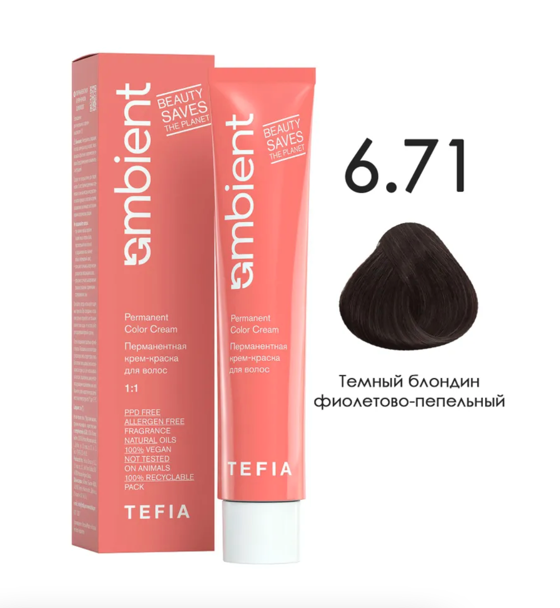 - TEFIA AMB Крем-краска 6.71 Темный блондин фиолетово-пепельный, 60 мл.