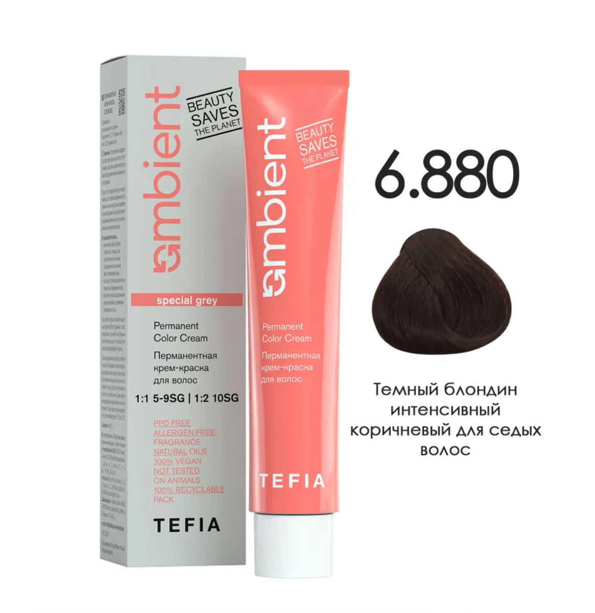 - TEFIA AMB Крем-краска 6.880 Темный блондин интенсивный коричневый для седых волос, 60 мл.