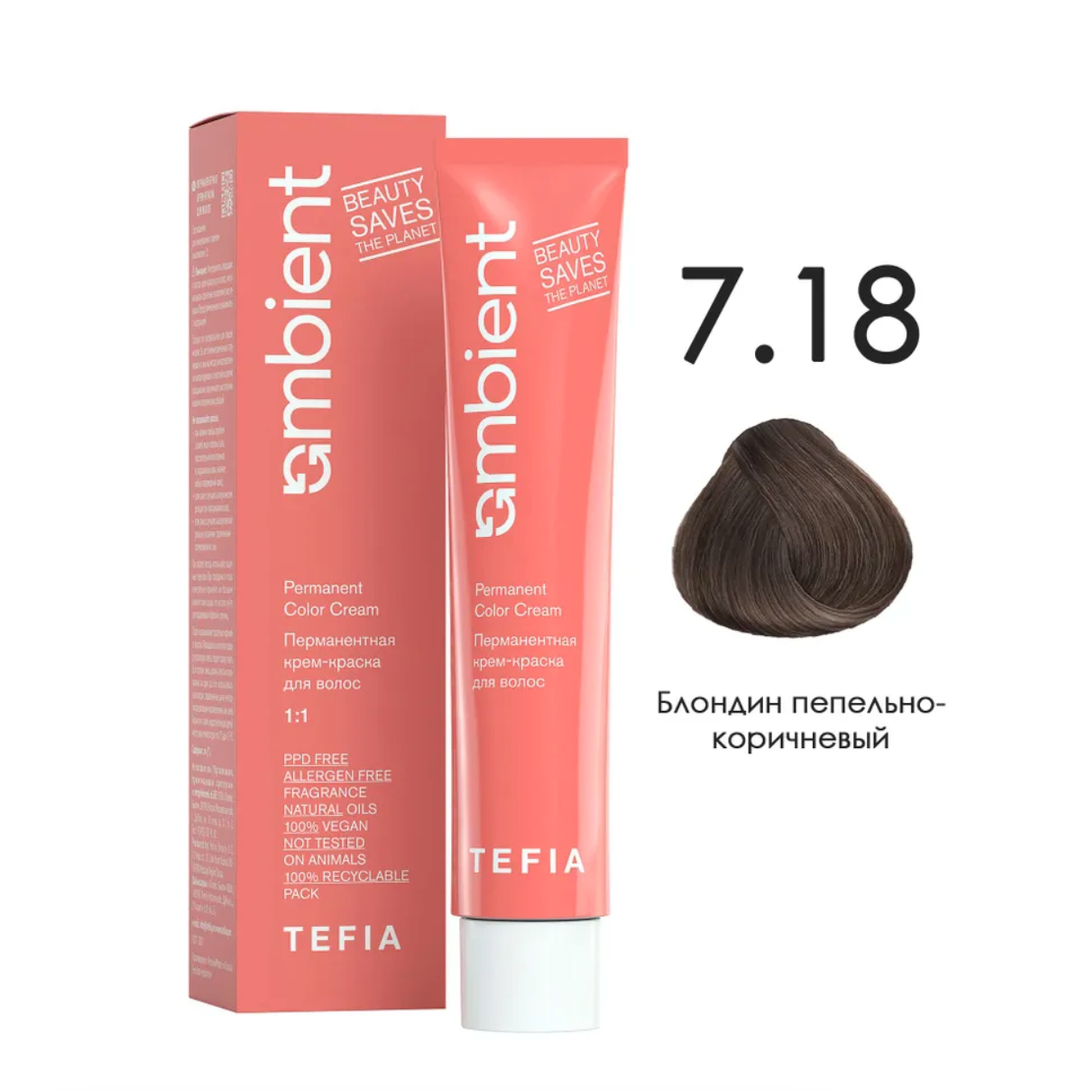 - TEFIA AMB Крем-краска 7.18 Блондин пепельно-коричневый, 60 мл.