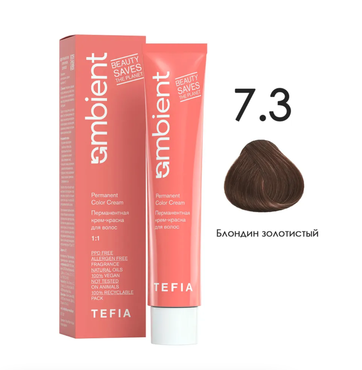 - TEFIA AMB Крем-краска 7.3 Блондин золотистый, 60 мл.