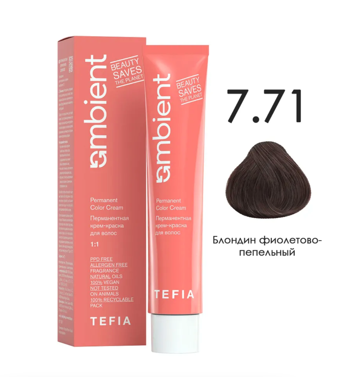 - TEFIA AMB Крем-краска 7.71 Блондин фиолетово-пепельный, 60 мл.