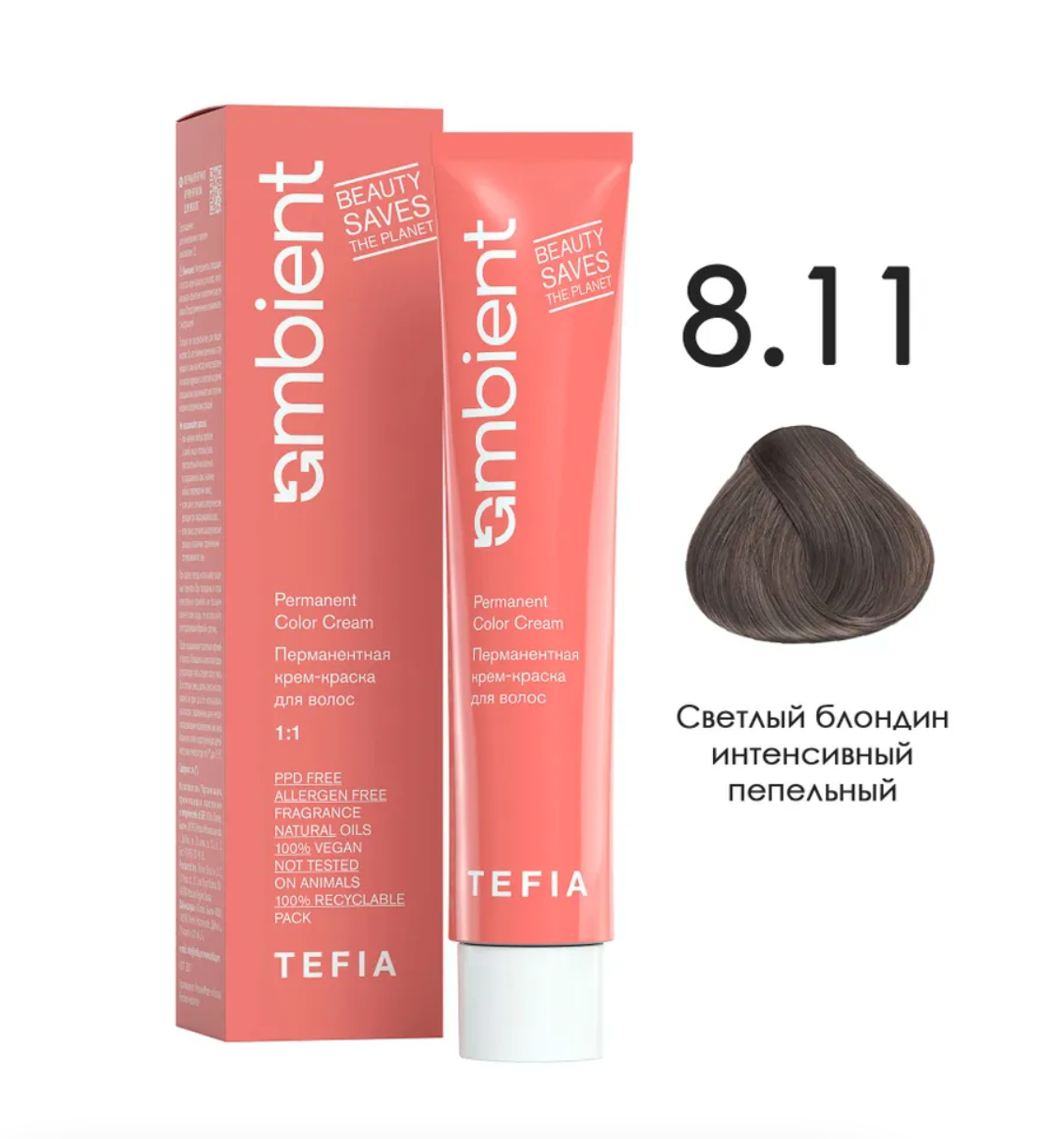 - TEFIA AMB Крем-краска 8.11 Светлый блондин интенсивный пепельный, 60 мл.