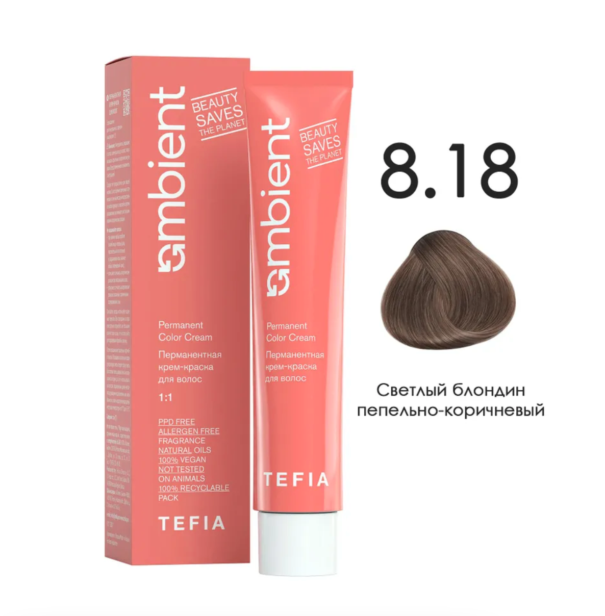 - TEFIA AMB Крем-краска 8.18 Светлый блондин пепельно-коричневый, 60 мл.