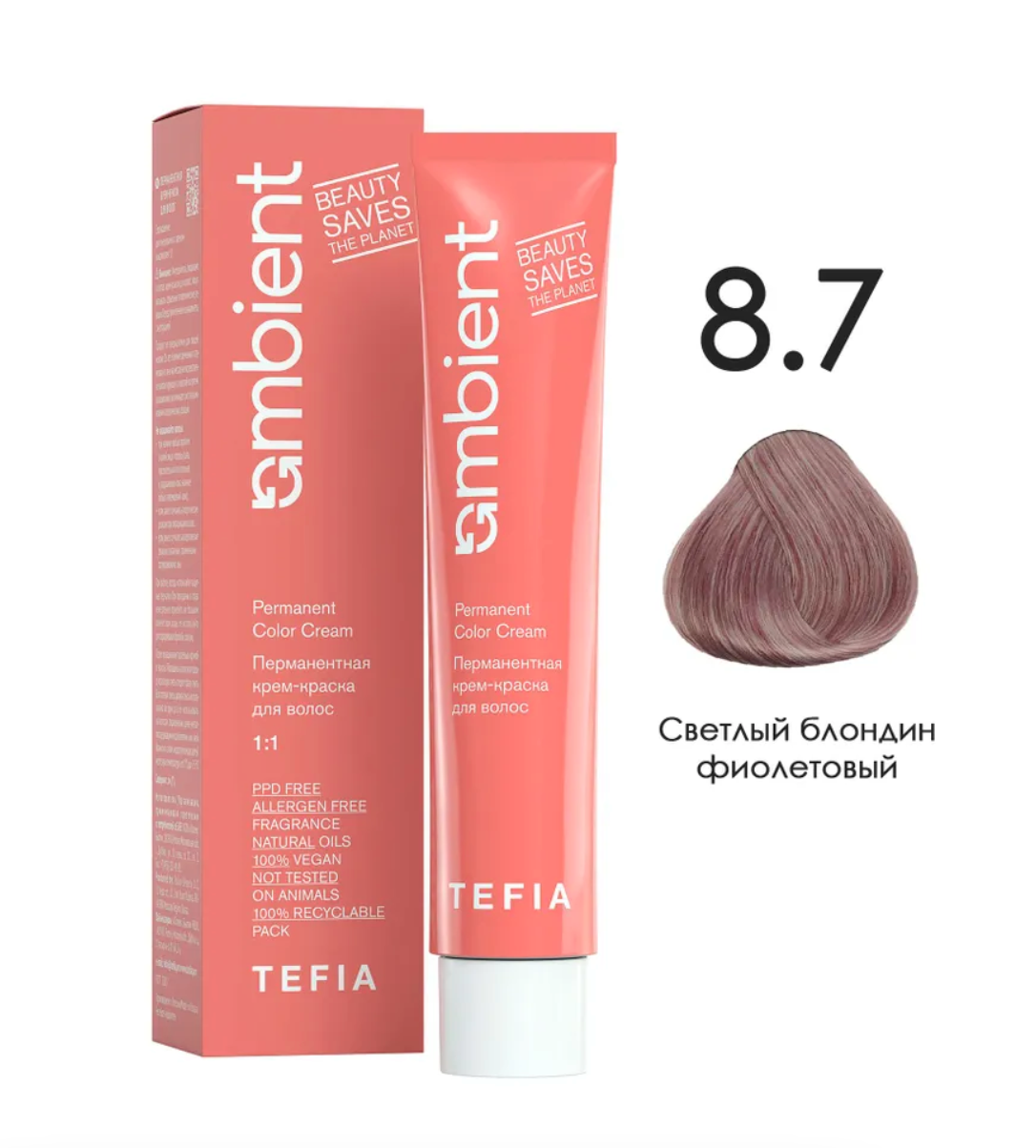 - TEFIA AMB Крем-краска 8.7 Светлый блондин фиолетовый, 60 мл.