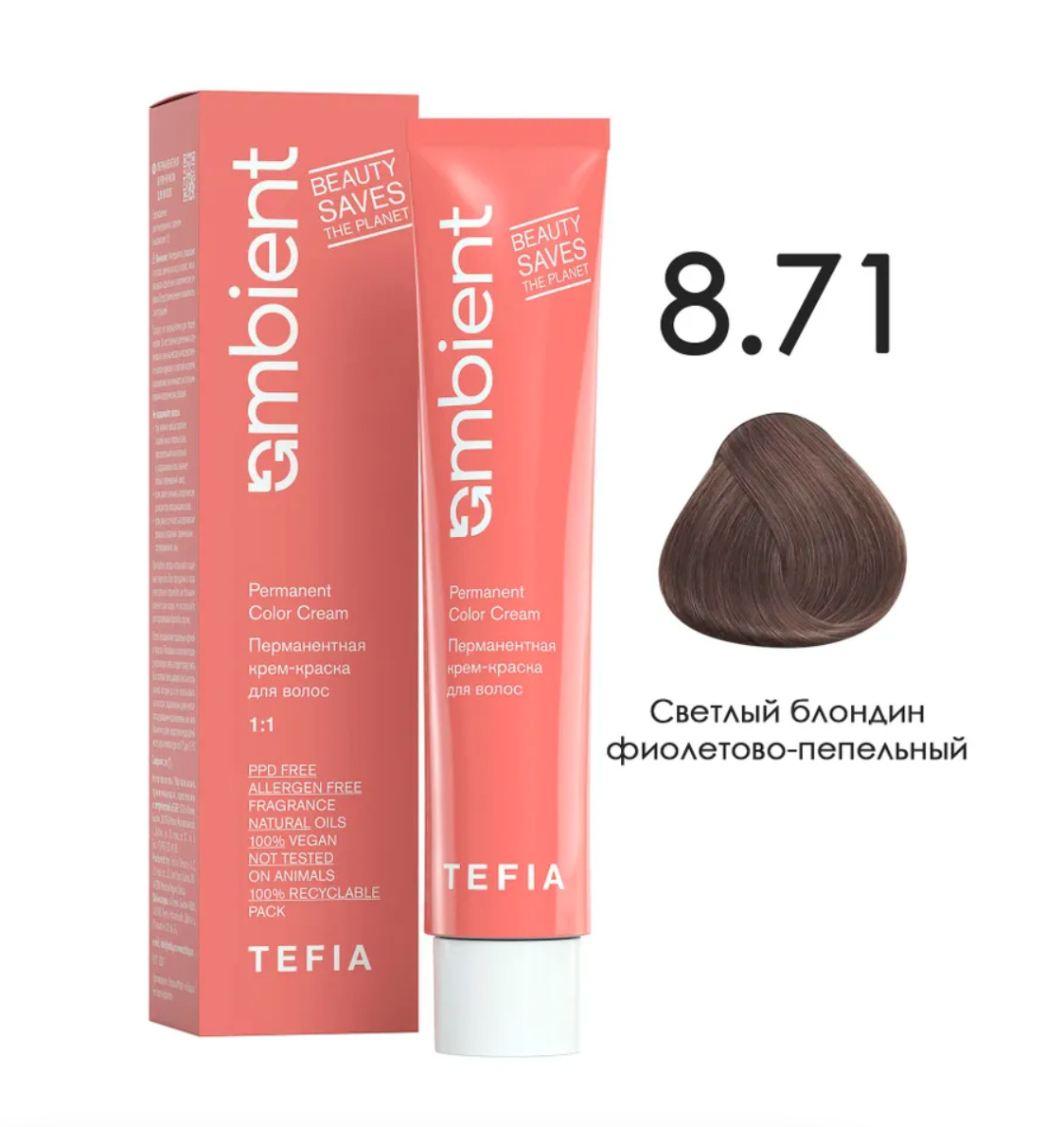 - TEFIA AMB Крем-краска 8.71 Светлый блондин фиолетово-пепельный, 60 мл.