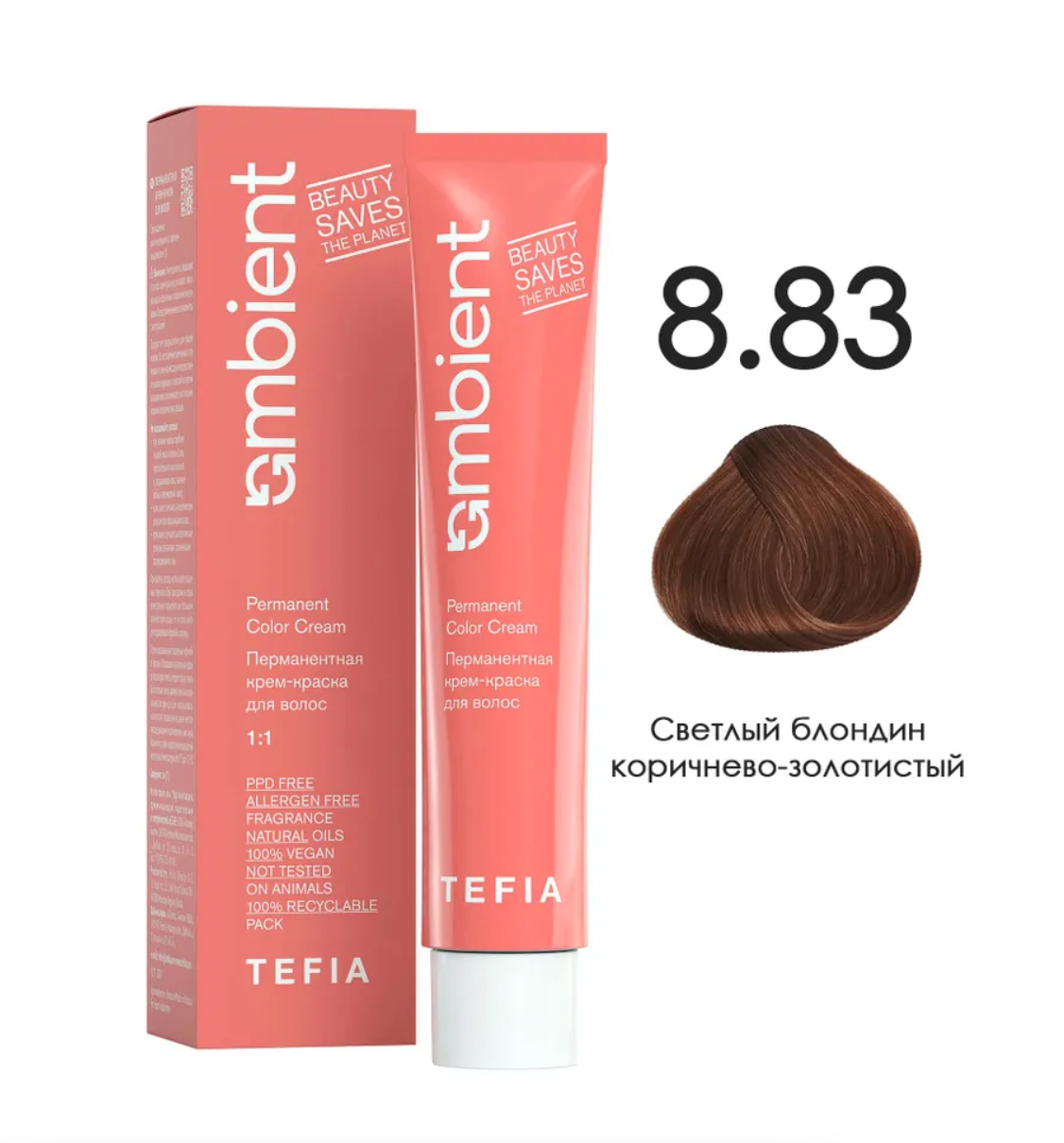 - TEFIA AMB Крем-краска 8.83 Светлый блондин коричнево-золотистый, 60 мл.