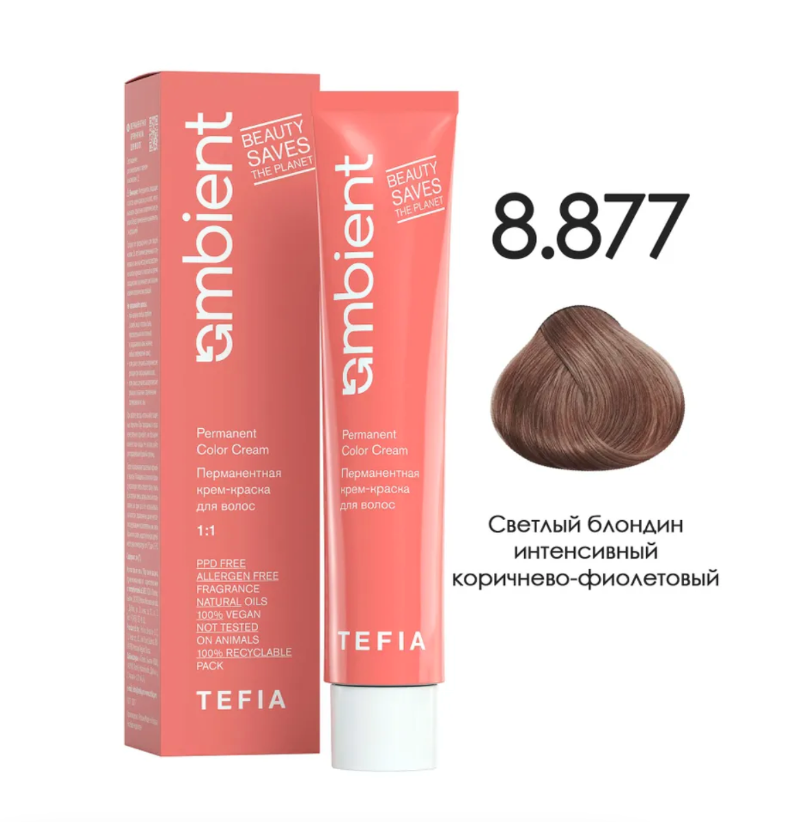- TEFIA AMB Крем-краска 8.877 Светлый блондин интенсивный коричнево-фиолетовый, 60 мл.
