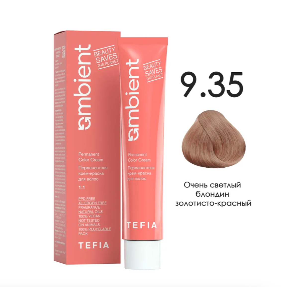 - TEFIA AMB Крем-краска 9.35 Очень светлый блондин золотисто-красный, 60 мл.