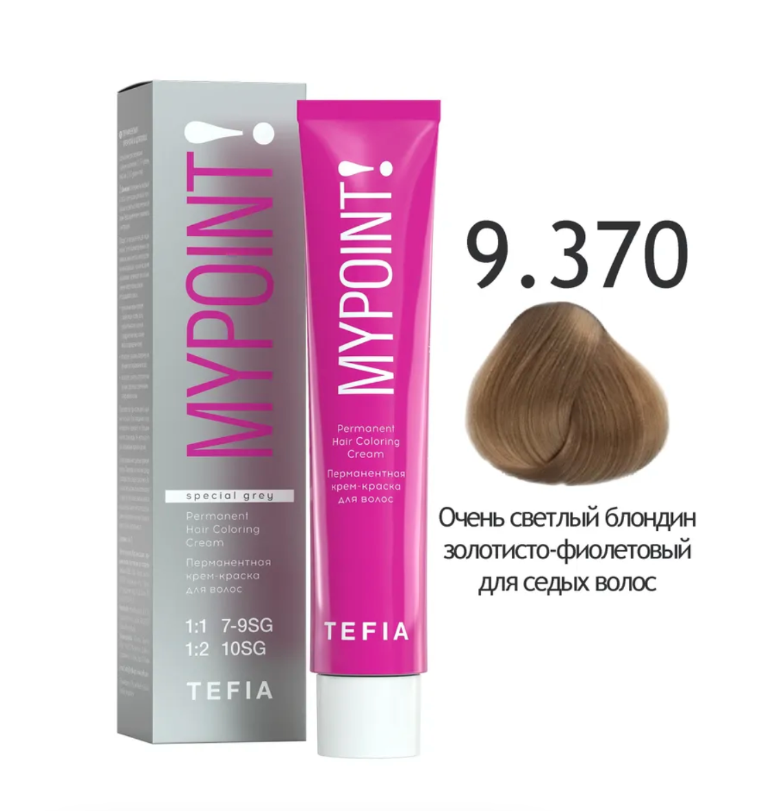- Mypoint Крем-краска 9.370 Очень светлый золотисто-фиолетовый блондин для седых волос, 60 мл.