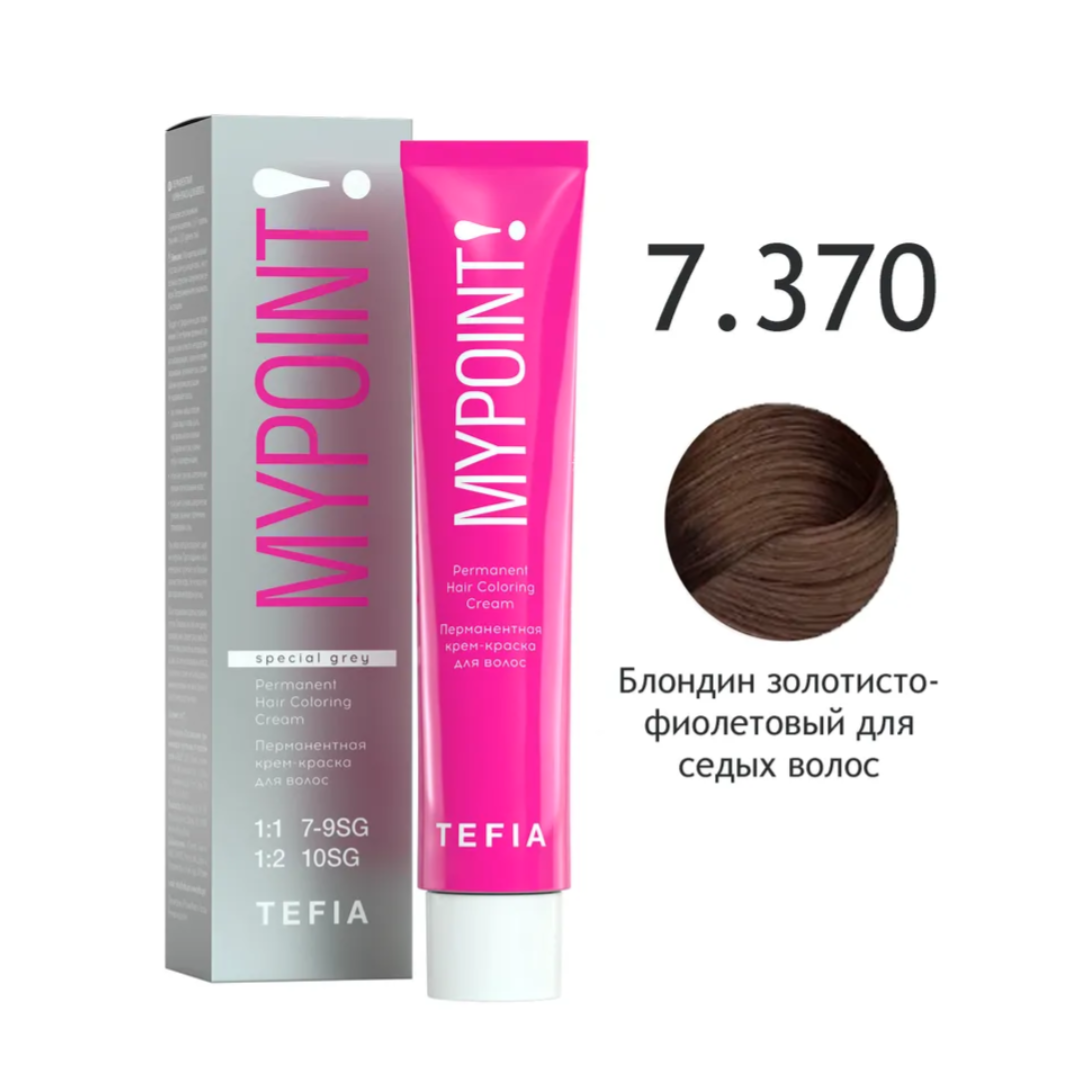 - TEFIA Крем-краска 7.370 Блондин золотисто-фиолетовый для седых волос, 60 мл.