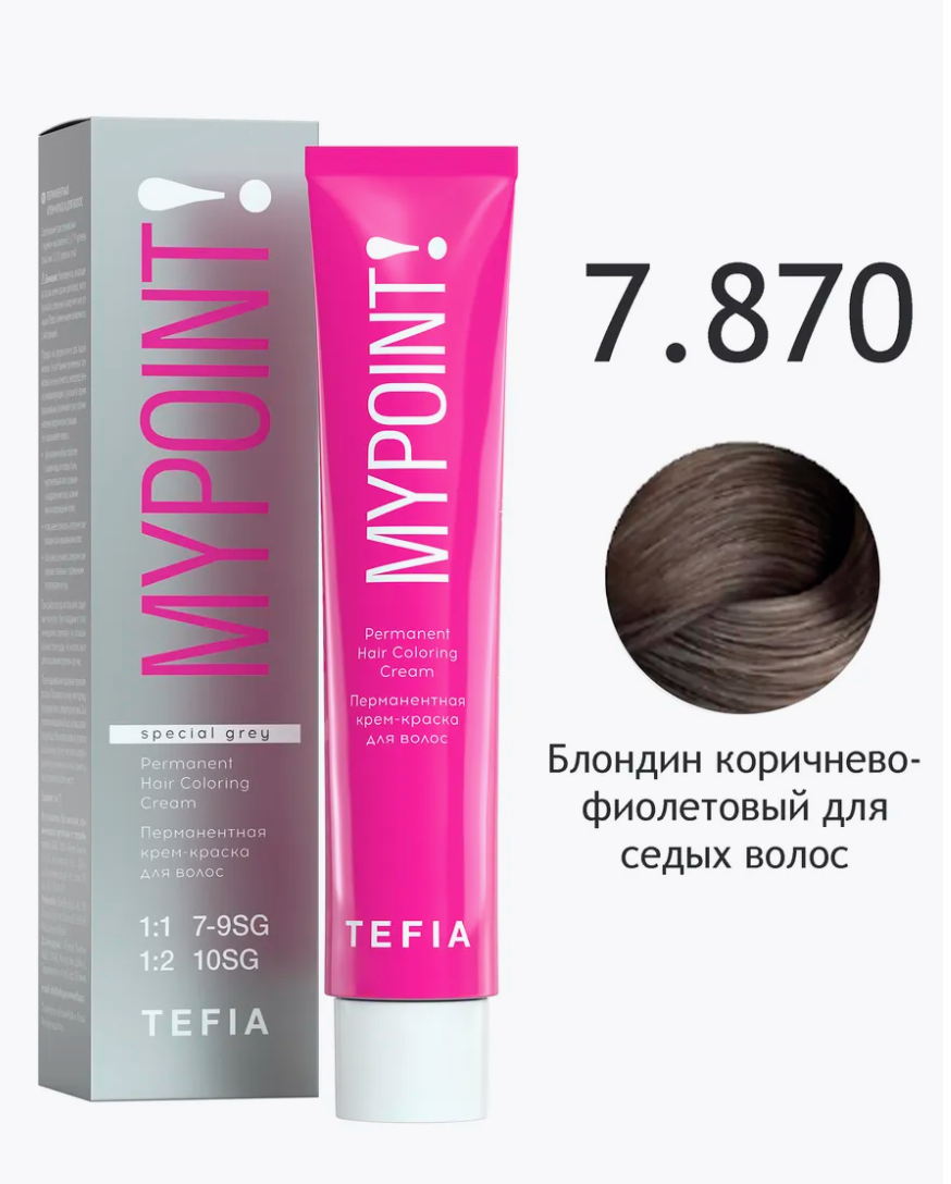 - TEFIA Крем-краска 7.870 Блондин коричнево-фиолетовый для седых волос, 60 мл.