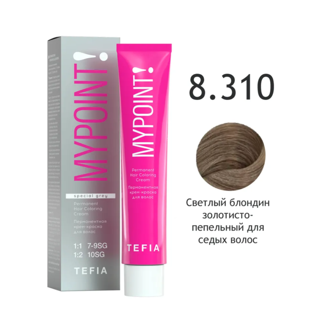 - TEFIA Крем-краска 8.310 Светлый блондин золотисто-пепельный для седых волос, 60 мл.