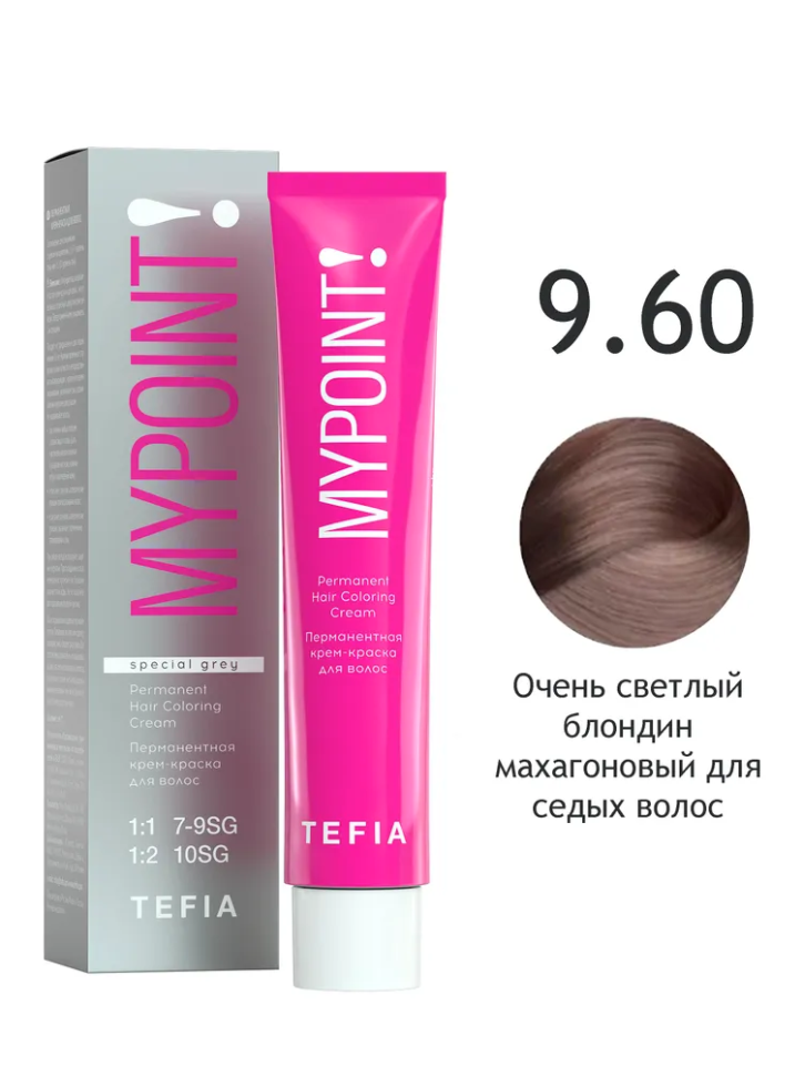 - TEFIA Крем-краска 9.60 Очень светлый блондин махагоновый для седых волос, 60 мл.