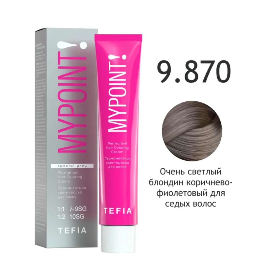 TEFIA Крем-краска 9.870 Очень светлый блондин коричнево-фиолетовый для седых волос.