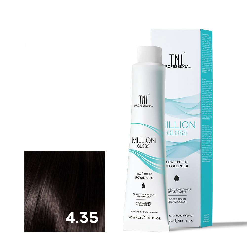 - TNL 4.35 Крем-краска для волос Million Gloss, коричневый каштановый, 100 мл.
