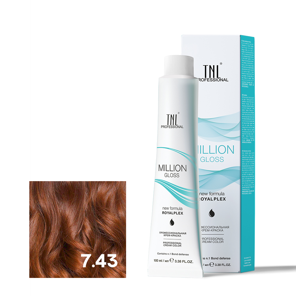 - TNL 7.43 Крем-краска для волос Million Gloss, блонд медный золотистый, 100 мл.