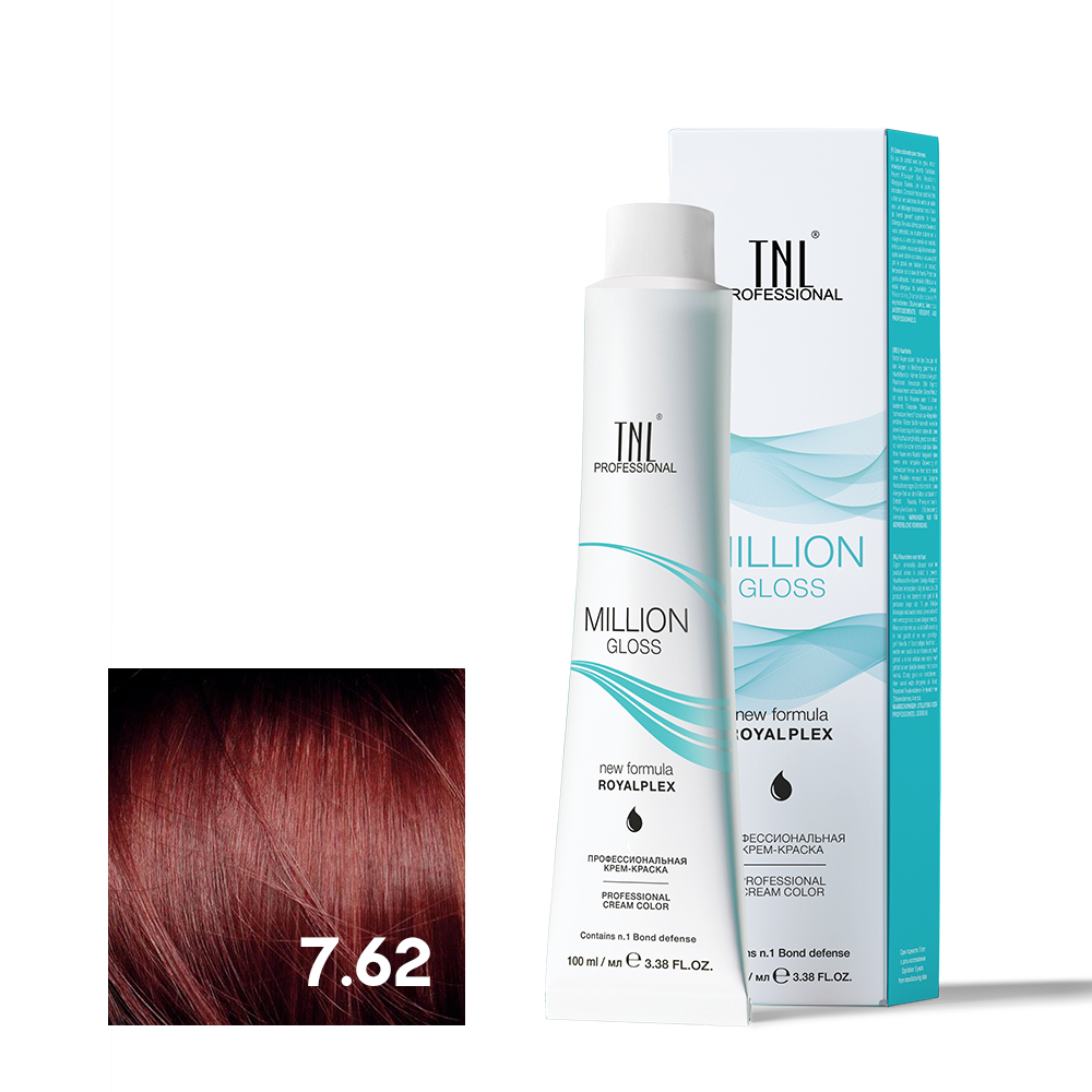 - TNL 7.62 Крем-краска для волос Million Gloss, блонд красный фиолетовый, 100 мл.