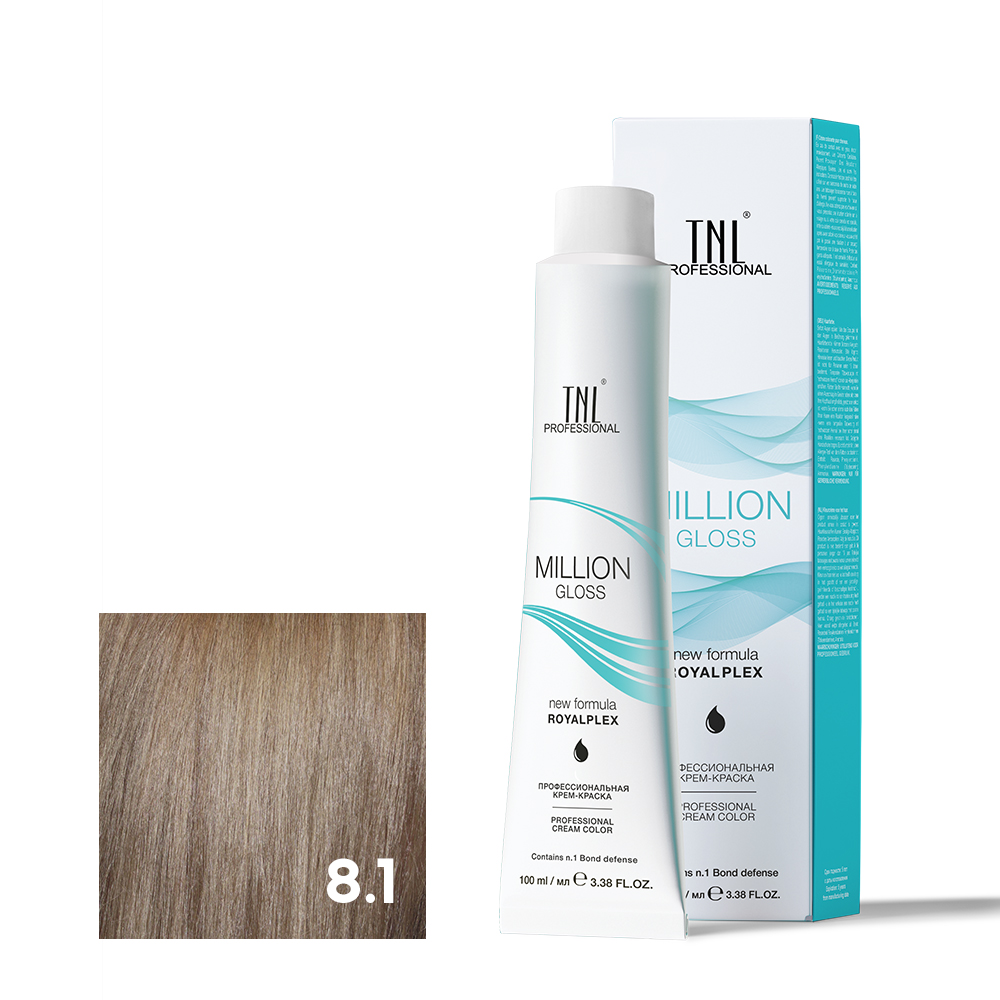 - TNL 8.1 Крем-краска для волос Million Gloss, светлый блонд пепельный, 100 мл.