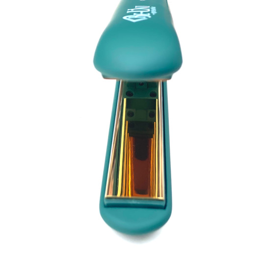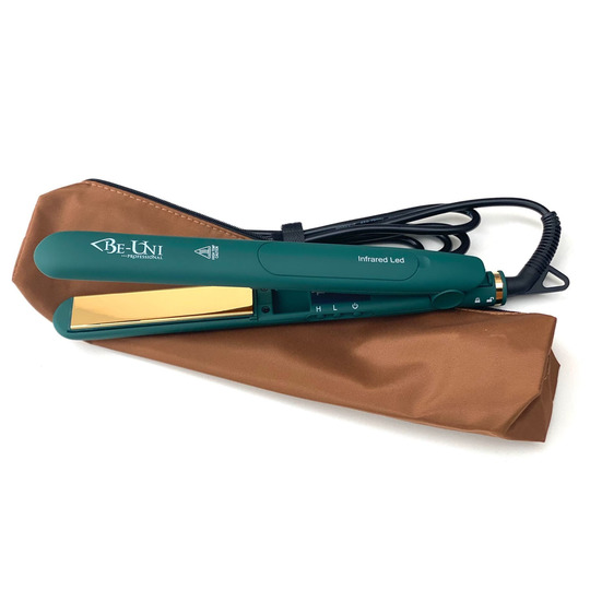 Утюжок для выпрямления волос Be-Uni GOLD TITAN BE125 - изумрудного цвета, с титановым золотым покрытием изготовлен из высококачественного пластика, керамики с уникальным покрытием пластин SwissGold — золотой зеркальный титан.