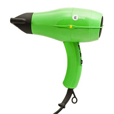 - Erika HDR 010 G ФЕН (зеленый) 2200Вт, поток 18 м/с., 1 насадка.