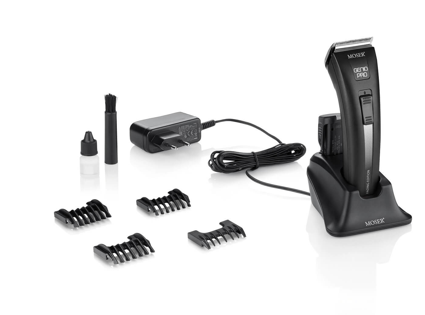 - Универсальная машинка Moser Genio Pro Fade разработана для стрижки плавных переходов на волосах всех типов. Длину среза изменяют рычажком в задней части ножевого блока — одинаково удобно для левой и правой руки.