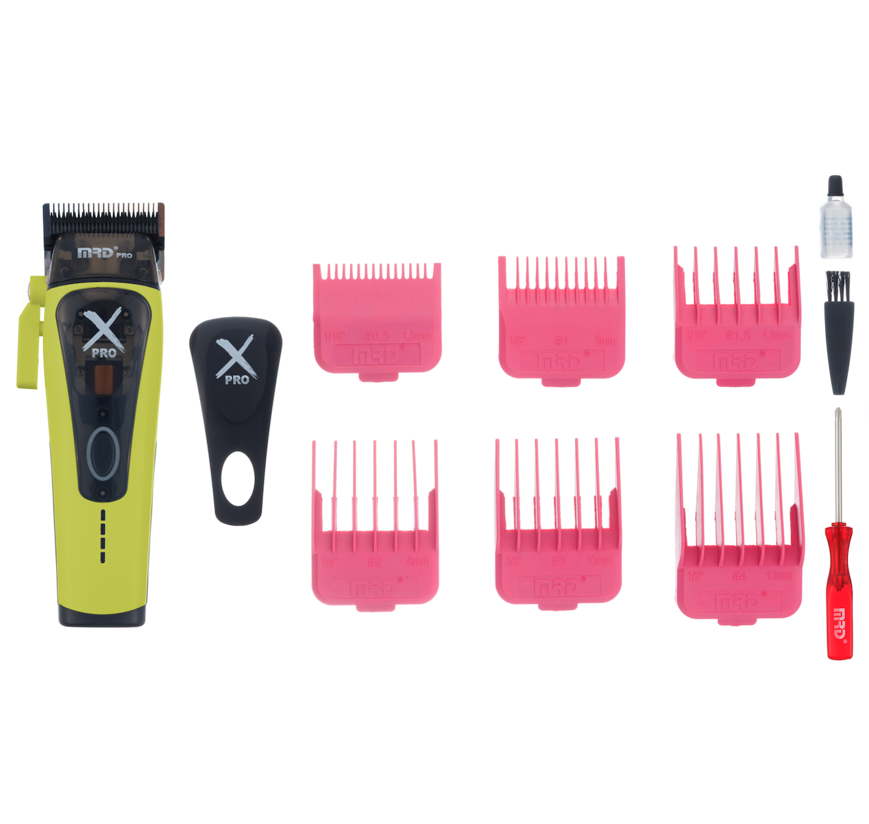 - MRD-HC-999C green Машинка для стрижки, 10000-13000 об/мин, нож 45 мм, 0,3-4,0 мм, 6 насадок