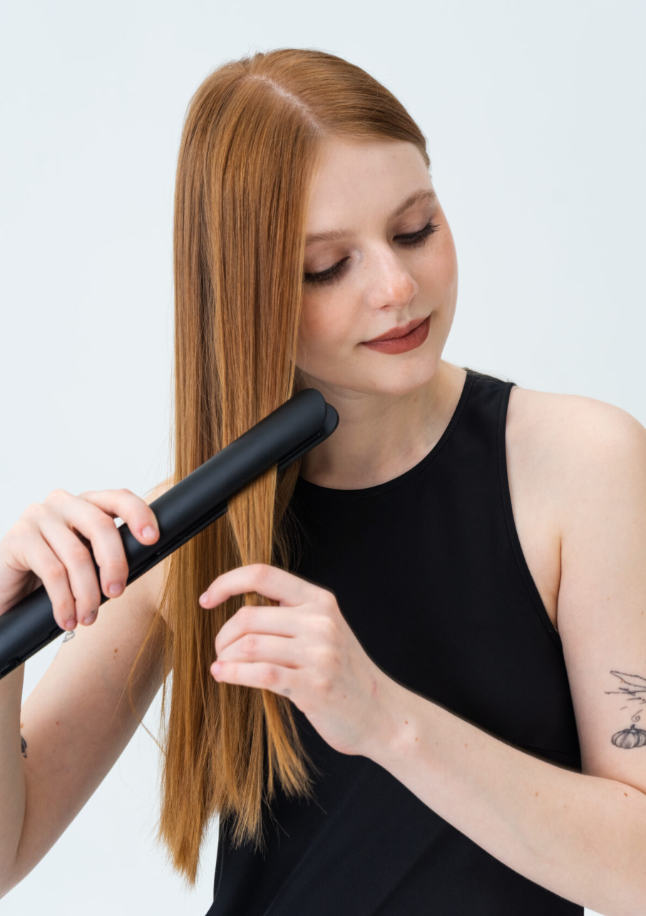 Удлиненная рабочая поверхность выпрямителя позволяет обрабатывать широкие пряди, экономя ваше время.