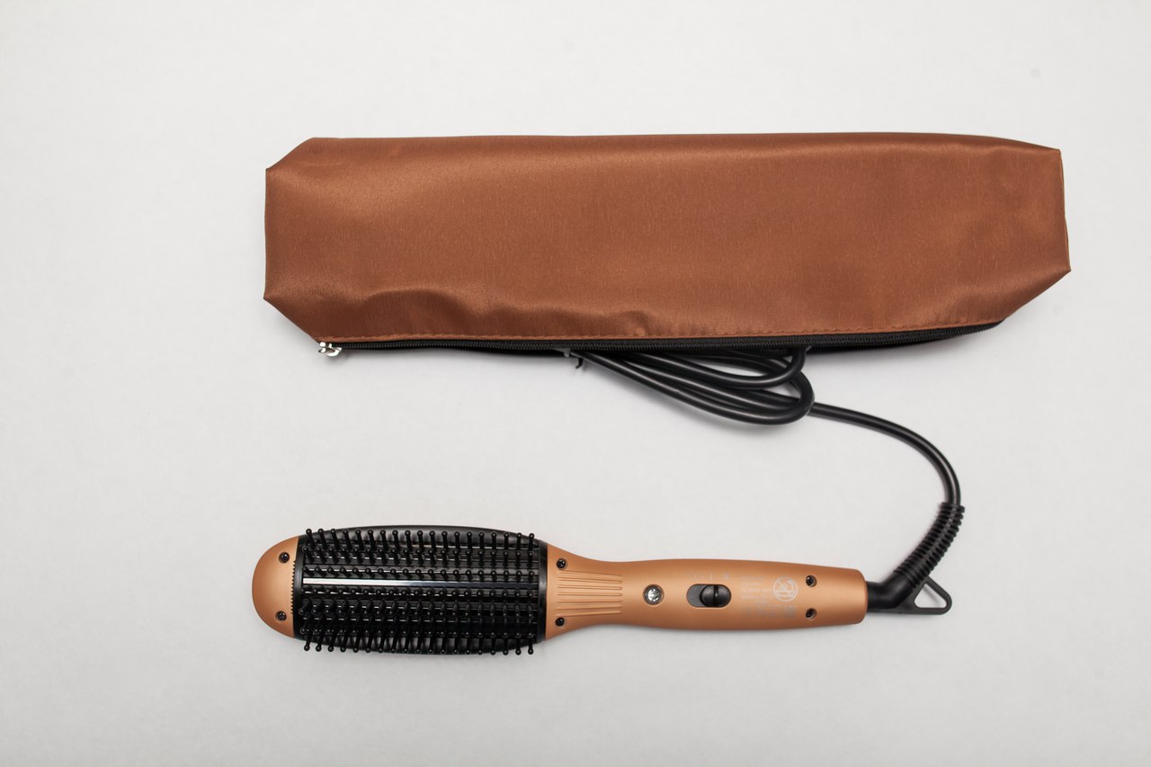 Удобный термочехол для безопасной транспортировки расчески-утюжка в комплекте.