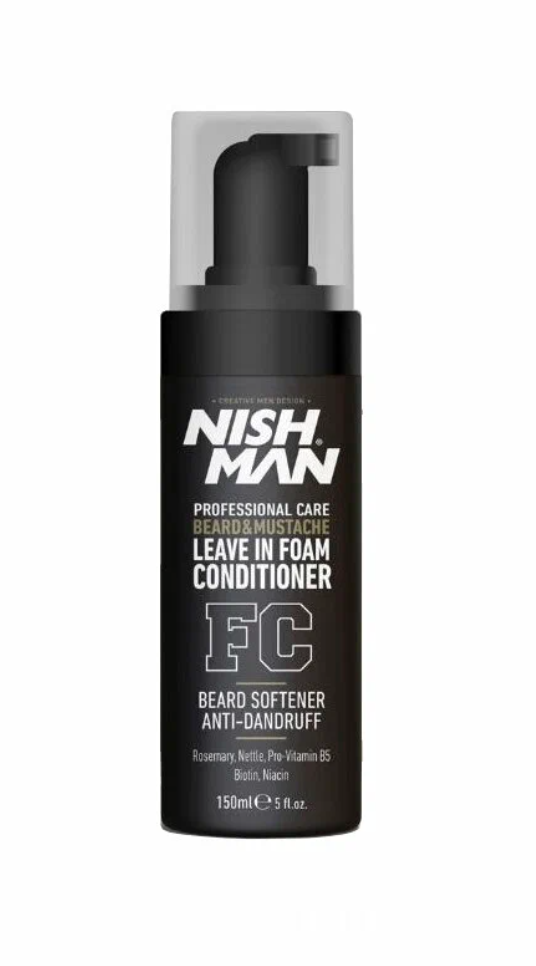 NISHMAN Несмываемый кондиционер-пенка для бороды и усов - предотвращает зуд и шелушение кожи, нейтрализует нежелательные запахи, дисциплинирует непослушные волосы и смягчает их.