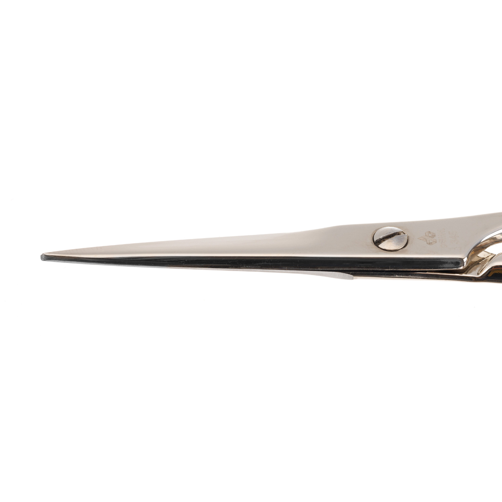 Ножницы для бороды и усов Dewal 345 изготовлены из углеродистой стали C50, заточены вручную, что обеспечивает их длительный срок службы и высокую точность среза.