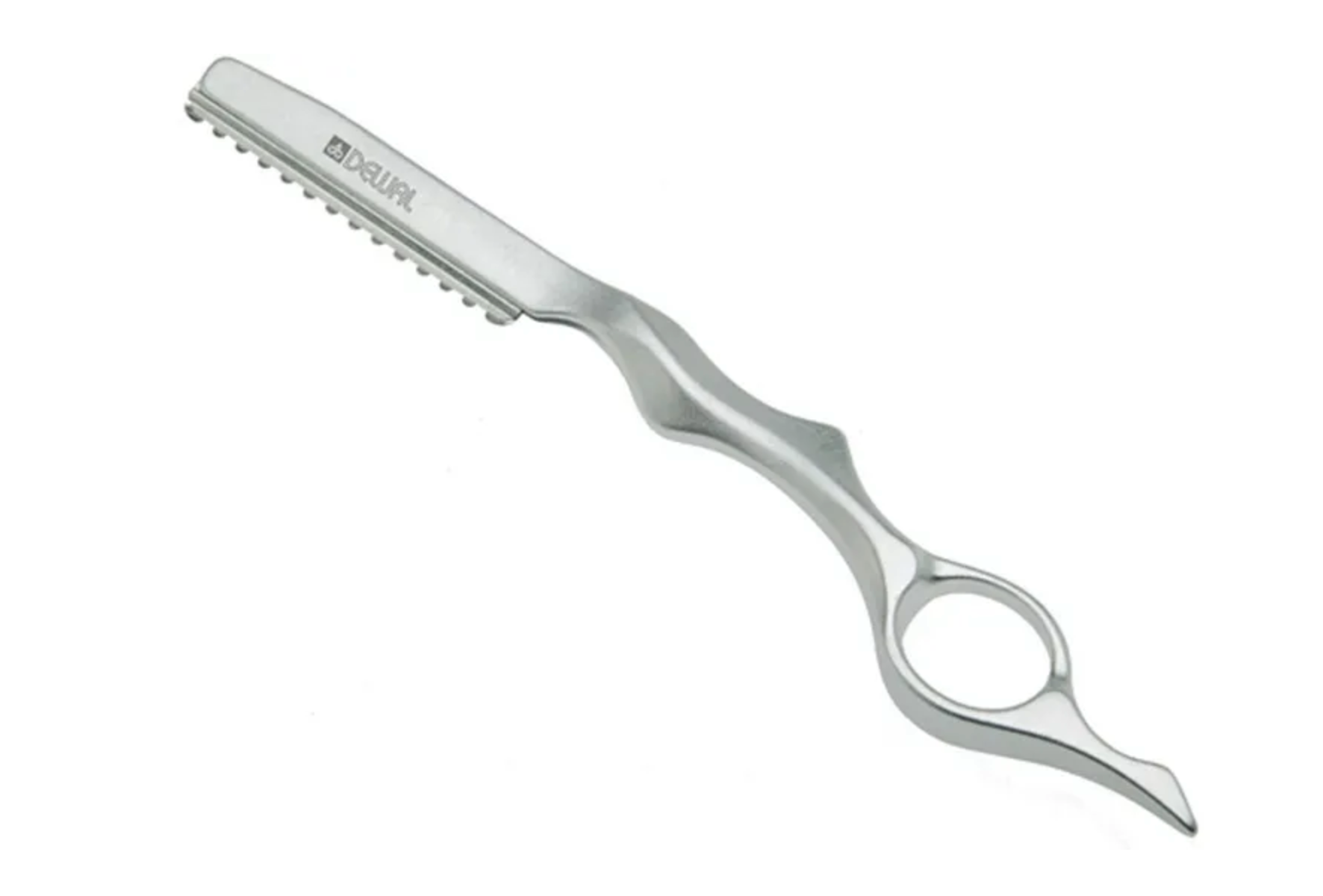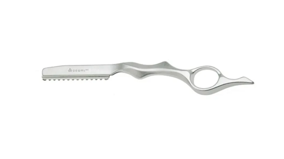 DEWAL Бритва филировочная со станком - с литой эргономичной ручкой и упором для пальцев.