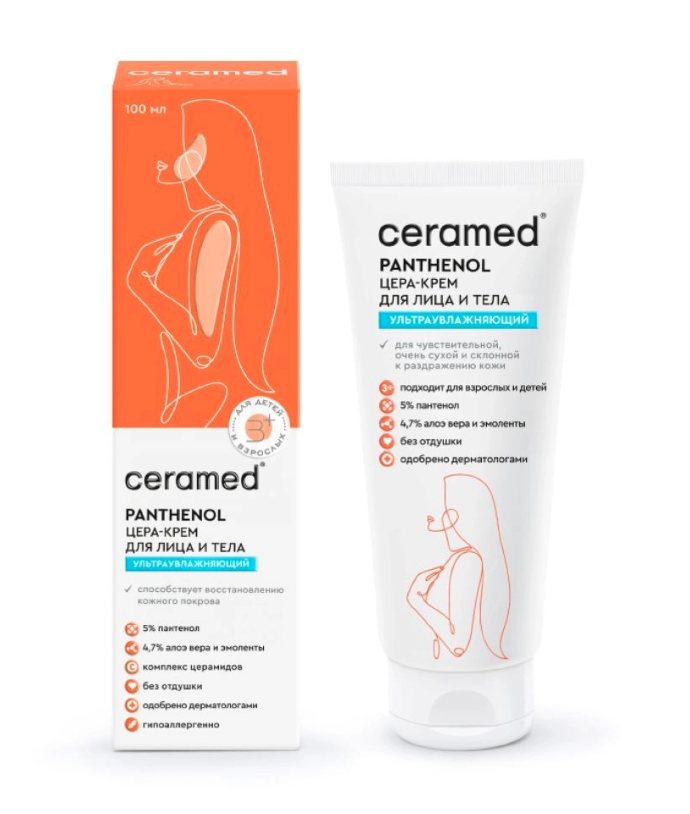 CERAMED Цера-крем для лица и тела ультраувлажняющий с Д-пантенолом - содержит церамиды - ключевые структурные элементы рогового слоя, оказывающие влияние на проницаемость кожи в обоих направлениях.