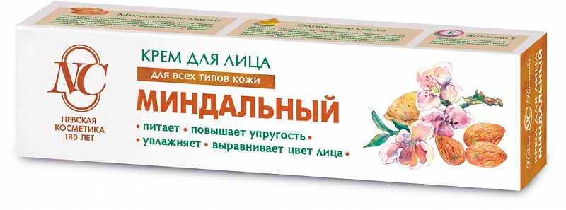 Невская Косметика Крем для лица Миндальный для всех типов кожи - Питает кожу лица, придает ей мягкость и упругость.