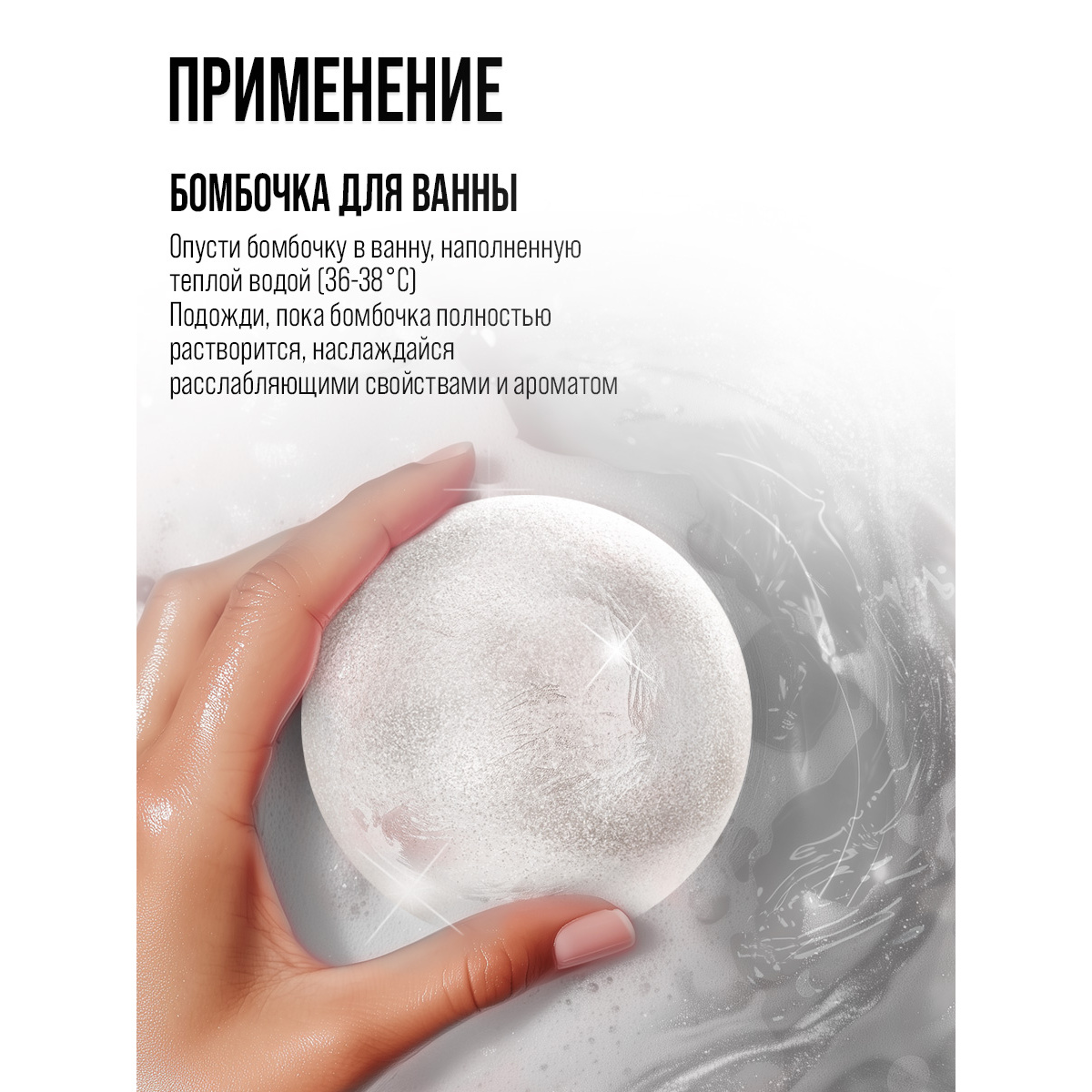 Просто выберите время, наполните ванну теплой водой и бросьте бомбочку в воду. Насладитесь обволакивающим ароматом, который отлично расслабит ваше тело.