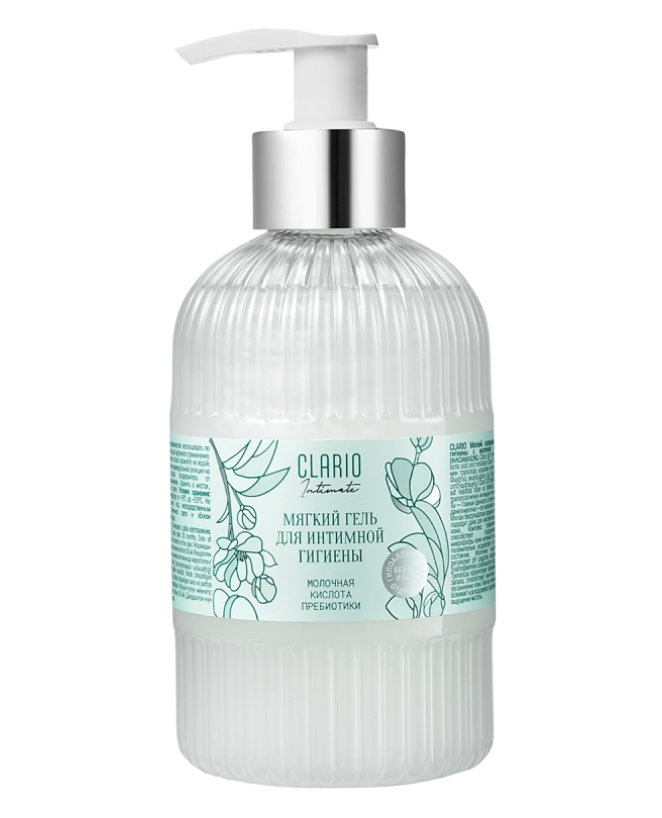 - CLARIO Мягкий освежающий гель для интимной гигиены с молочной кислотой и трегалозой, 295 мл.